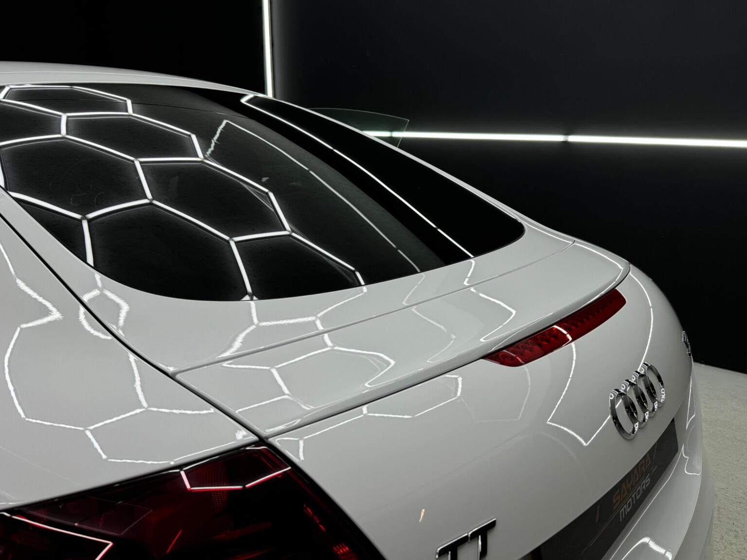 Here at Sayara Motors Introducing the Audi TT, presented in a striking white finish. This vehicle is the epitome of contemporary sports car aesthetics.